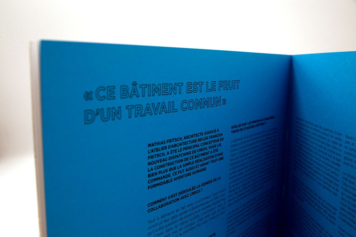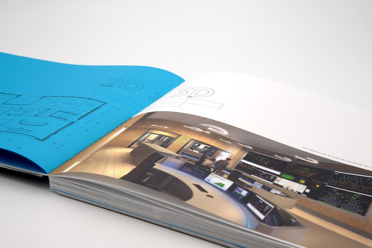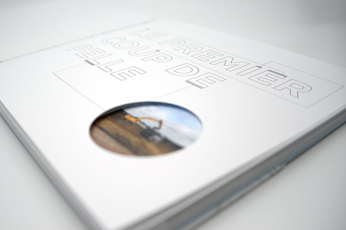 Compose a limited edition photo book (300 copies) documenting the construction of the new dispatching building in Bettembourg. The hardcover book contains various interviews, plans and explanations of the construction project, and the imagery used in dispatching is graphically processed to illustrate the information clearly and in a modern way.
