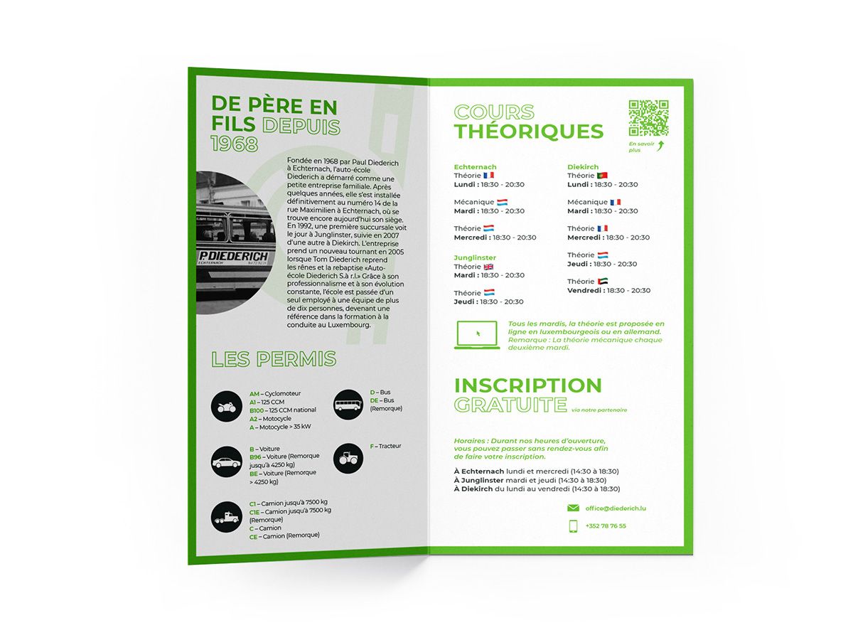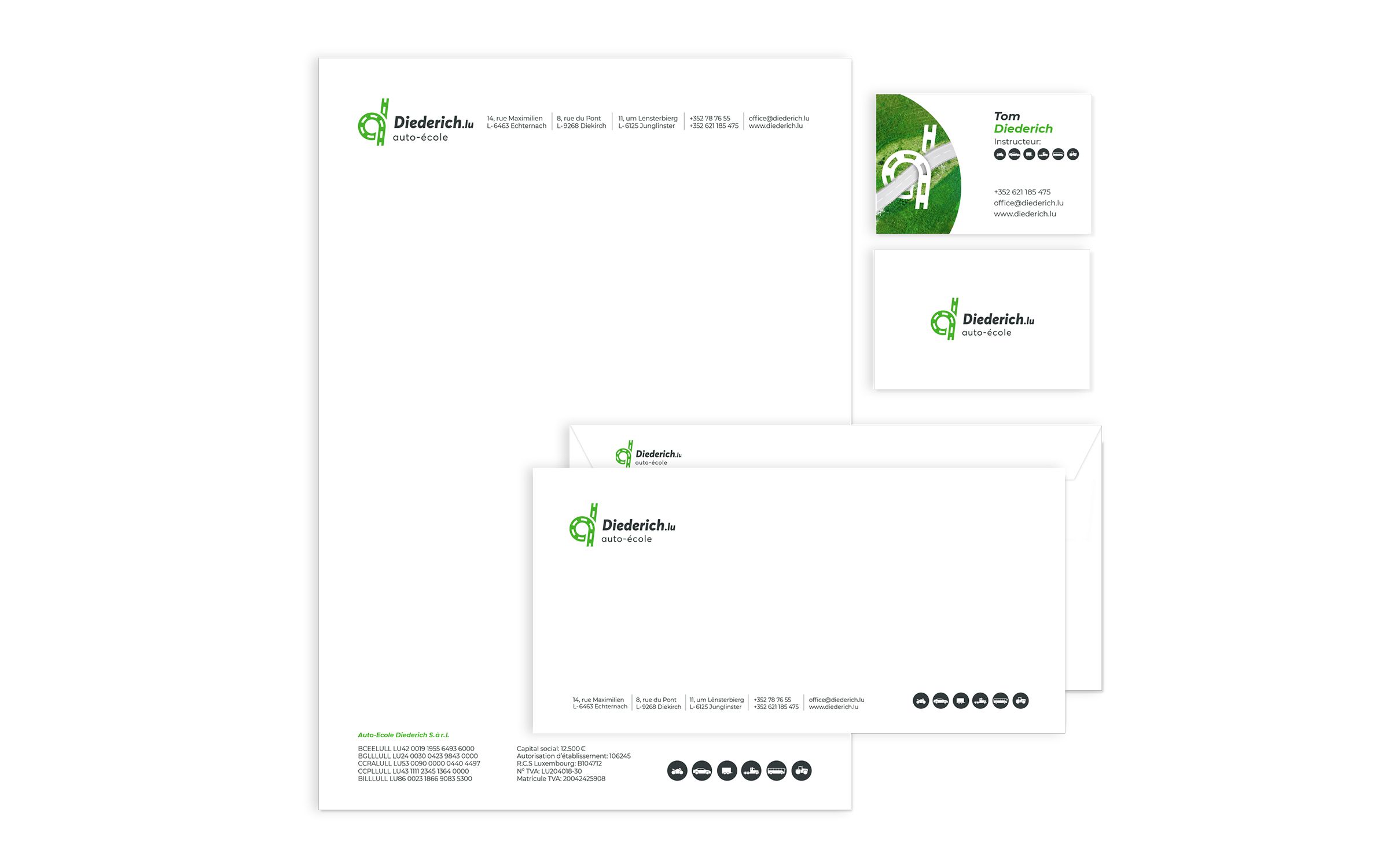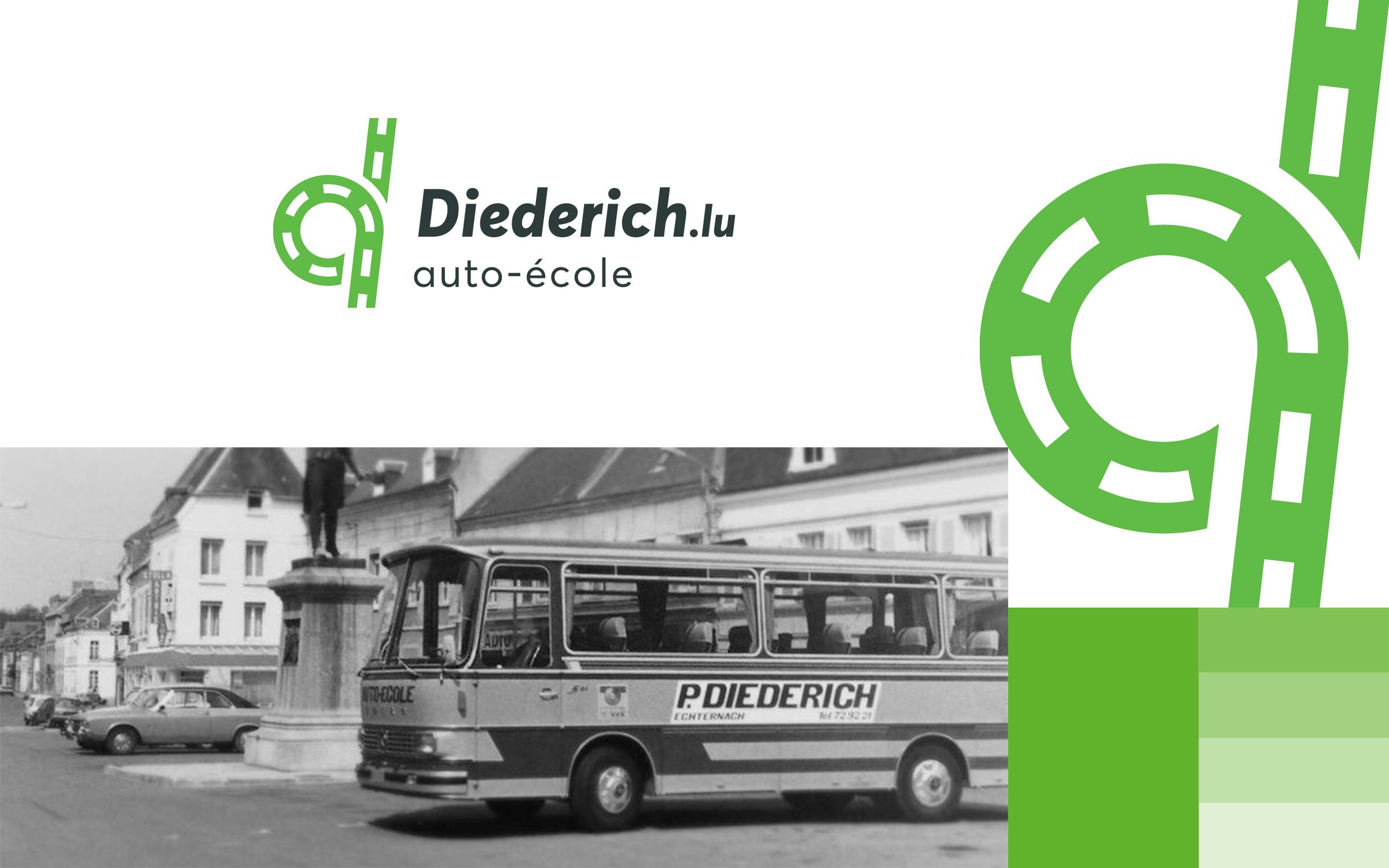 Create a dynamic new look, starting with a new logo for the family-owned Auto-Ecole Diederich driving school, founded in 1967, including the necessary printed materials, lettering for the entire fleet of vehicles, and the development of a clear website.