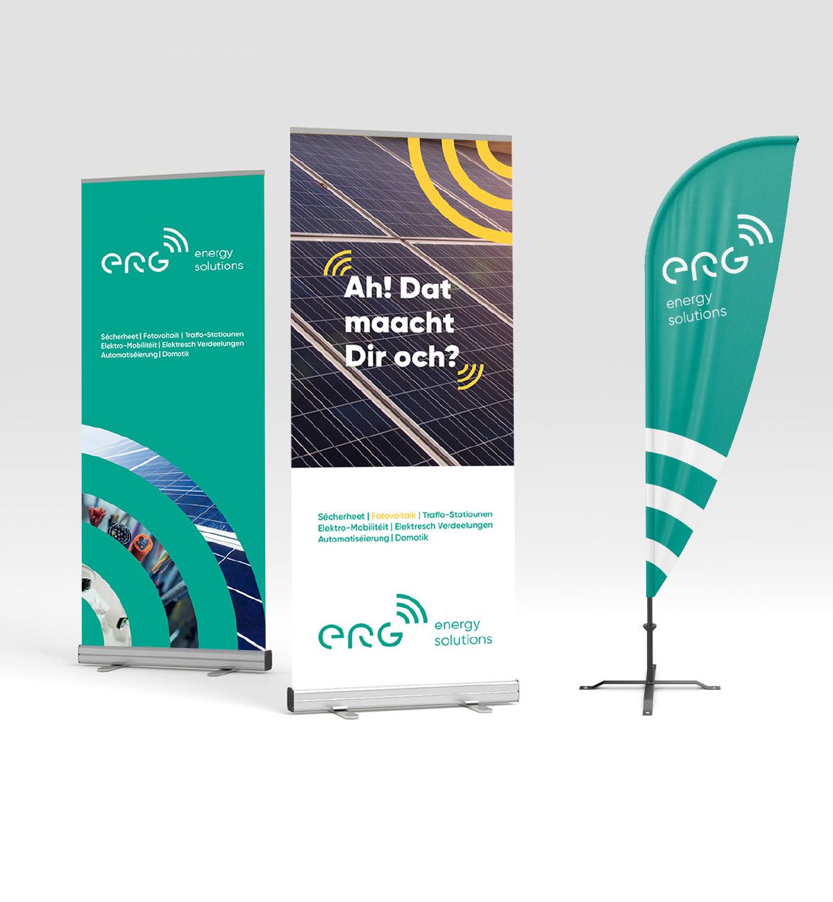 Founded in 1991 as a small electrical company, Électricité Reiter & Grethen has grown into a specialised and innovative installer. The decision to adopt a shorter name gave rise to the abbreviation “ERG”, which became the company's new symbol. Based on these three letters, a logotype was created using segments of circles, reflecting connectivity and energy solutions.